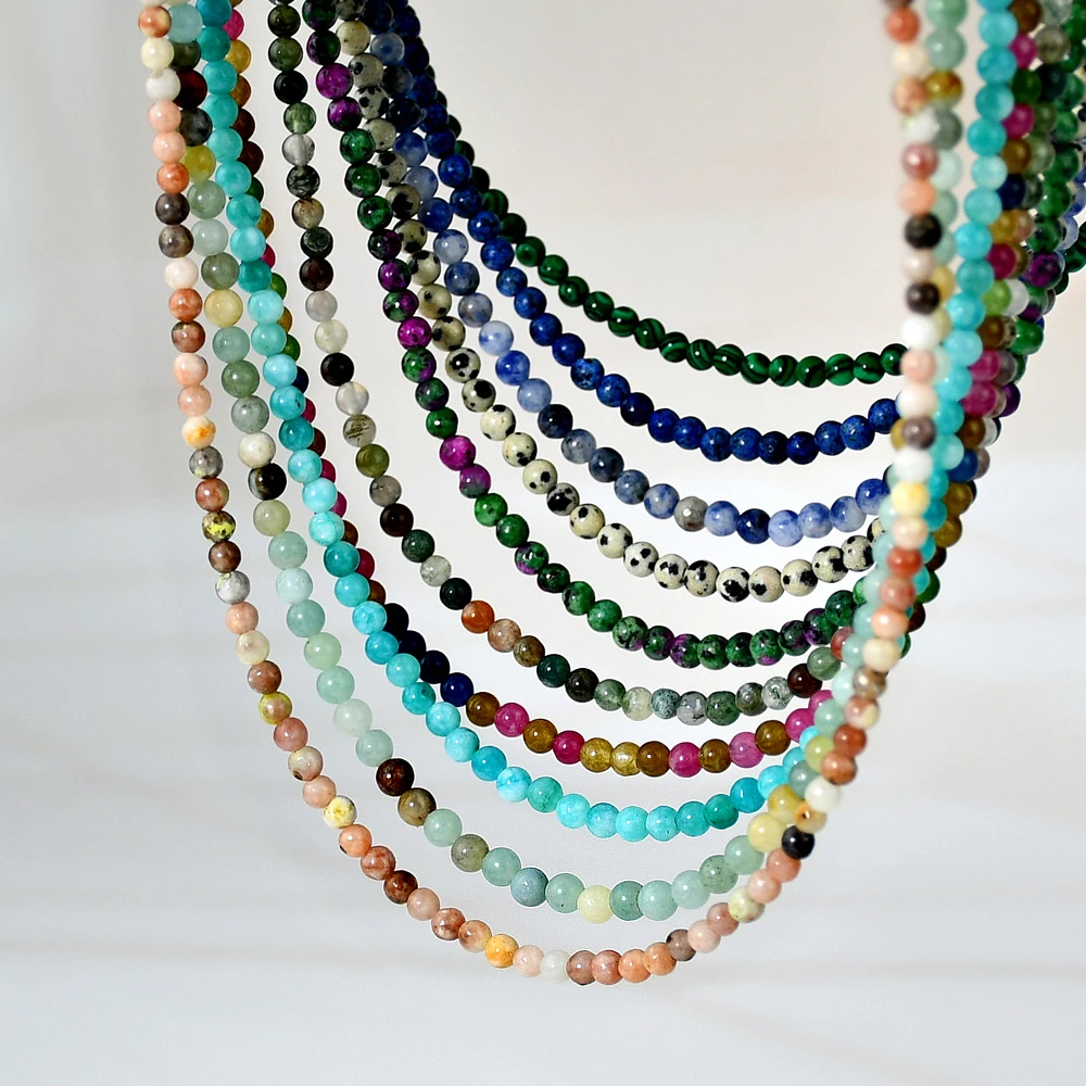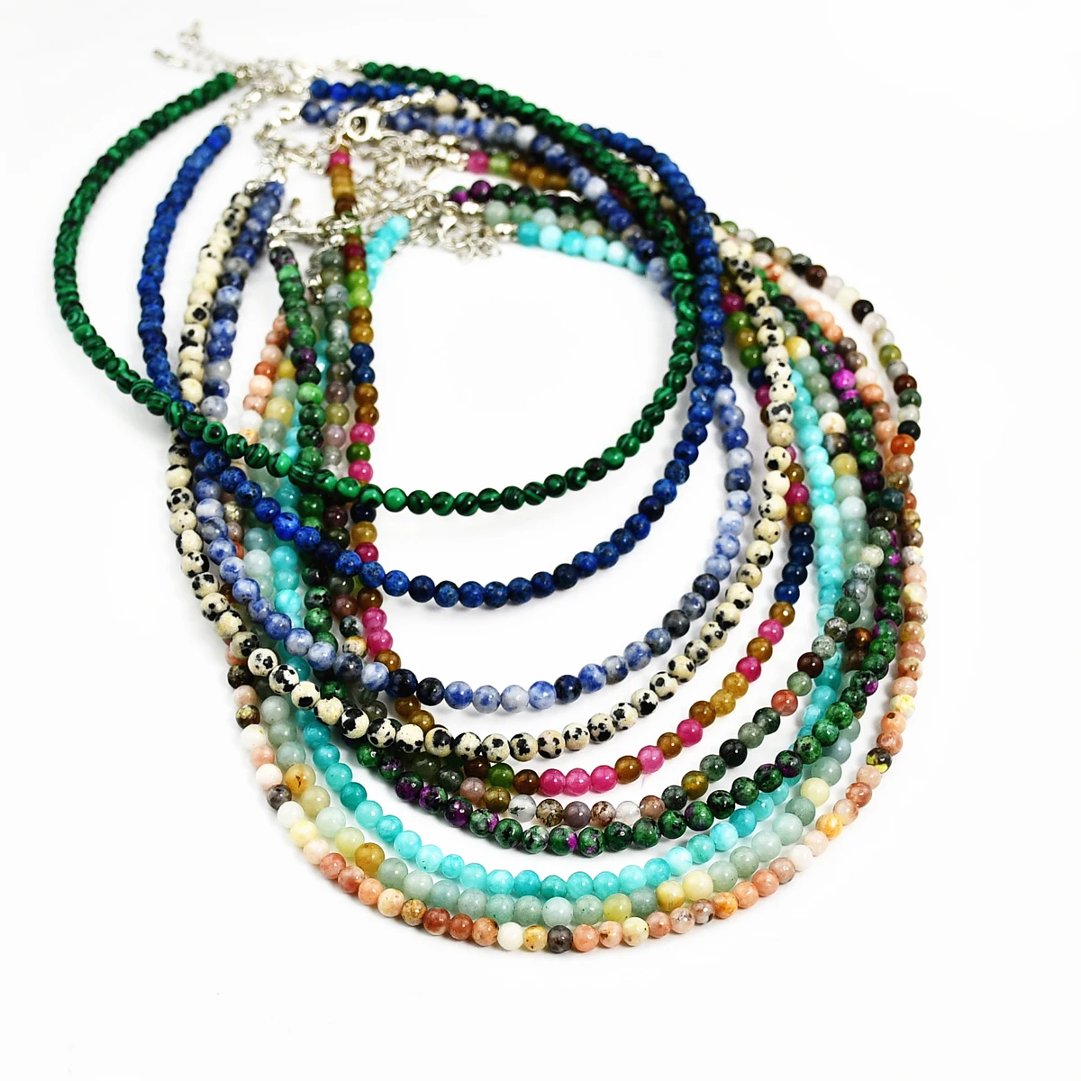 Boho Colored Natural Stone 4mm Round Beads Necklaces